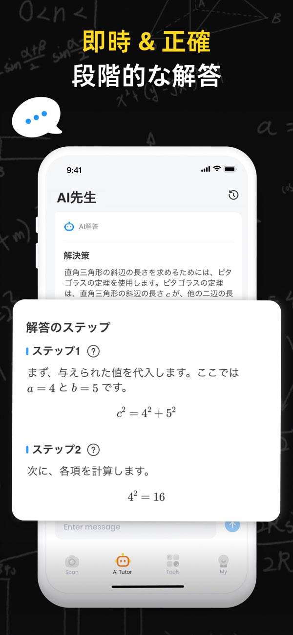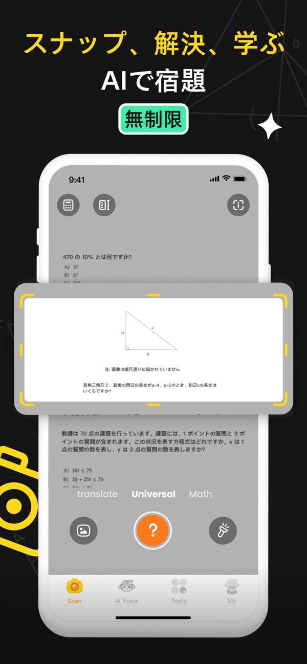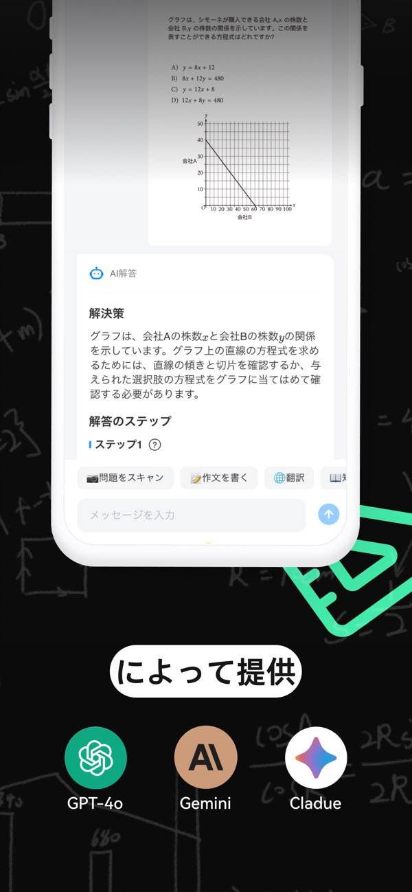 数学問題の答え合わせをAIが行ってくれます。問題を写真で問題を撮るだけで、正確な答えと解説を表示。