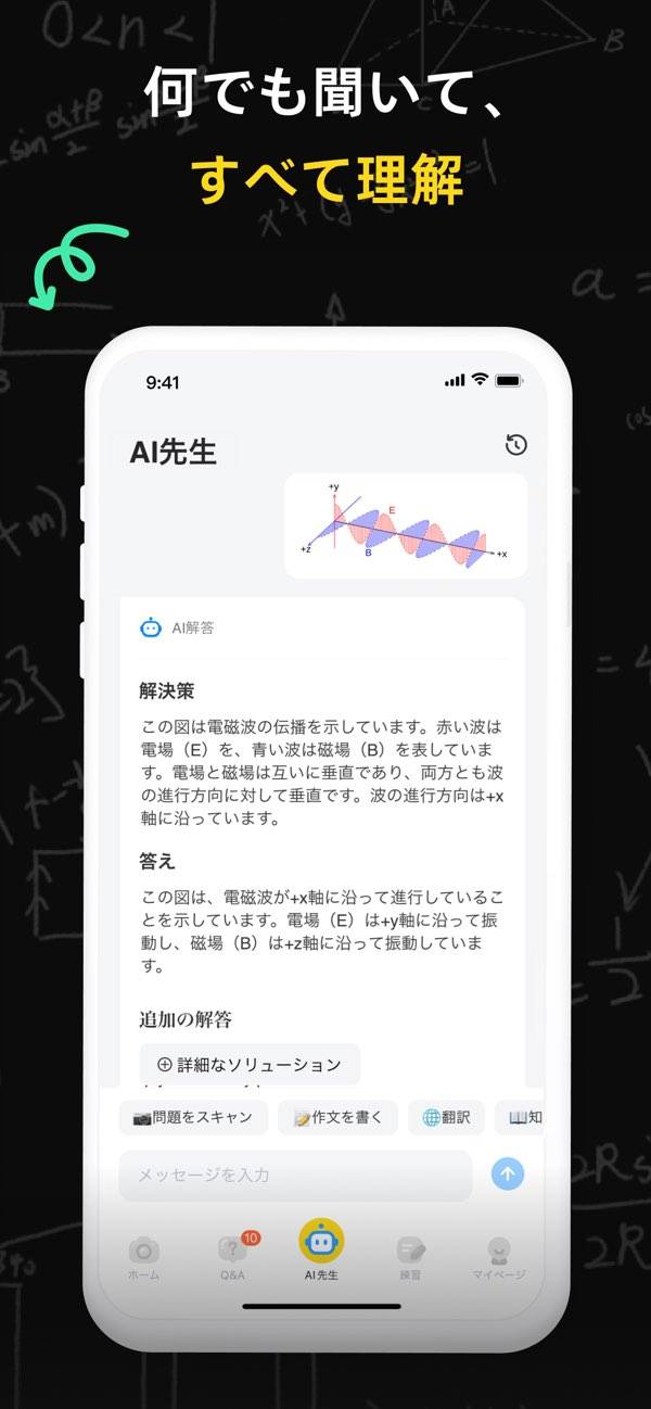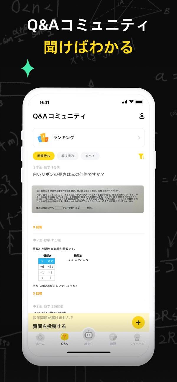 保護者も子どもの宿題チェックに役立ち、学習のサポートが可能です。また答え合わせ以外にも、数学に関する質問にAIが答えてくれる機能も搭載されています。