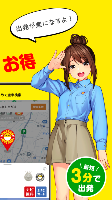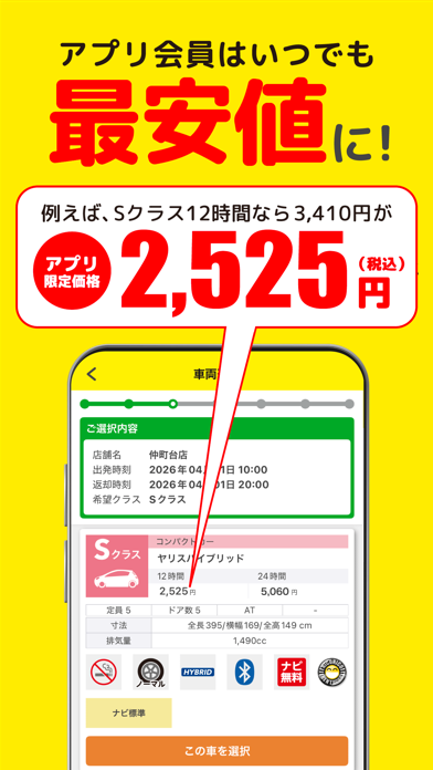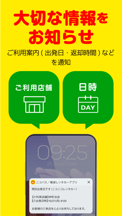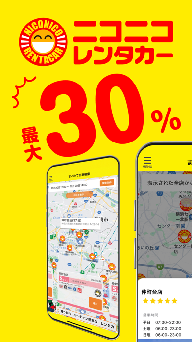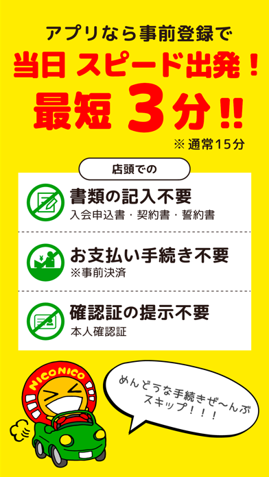 • レンタカーの事前予約ができる、ニコニコレンタカー会員向けアプリ