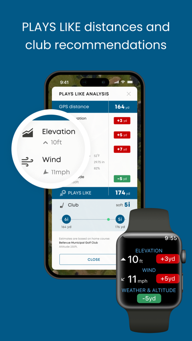 日本だけでなく世界中にもある4万ヶ所以上のコースに対応。各ホールごとのスコア記録だけでなく、グリーンまでの残りの距離を計測してくれる機能まで付いている優れものです。