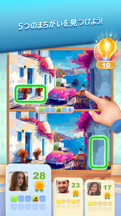 複数人で間違い探しに挑み、1位を獲得するとステージクリア。はじめは数秒で解けるほど簡単で、少しずつしっかりした難易度になっていきます。