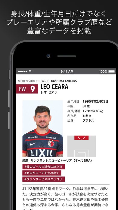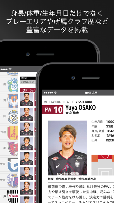Jリーグと欧州リーグの選手データを一挙に収録 名鑑をスマホの中に