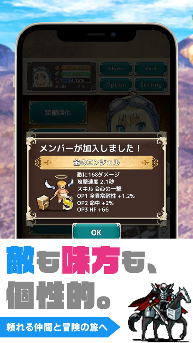 - 少女を育成しながら冒険する放置ゲー。レベルアップによる強化は無限大