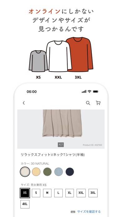 本アプリではオンラインストアも利用できます。サイズ表やカメラ撮影でおすすめのサイズを確認できる機能など、サイズ選びのサポートが充実。オンラインにしかないデザインやサイズもあるため、自分にぴったりの商品を見つけやすくなるでしょう。