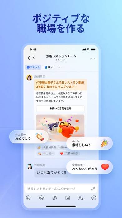 - ビデオ通話、ドキュメント管理をはじめ、利益向上につながる機能も多数