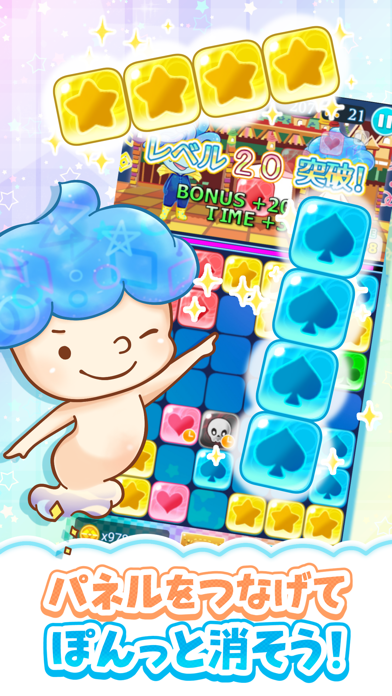 キャラクターが可愛く、斬新なパズルシステムで連鎖を上手く繋げた時の爽快感もあって楽しめます(*´v`*)難易度もちょうど良くて簡単操作なのと課金なしでも十分に遊べられるので、空き時間や暇つぶしにぜひおすすめです。