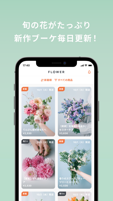 豪華なブーケを手軽な価格で楽しめるアプリです。毎日新作の大きなブーケが登場し、購入したお花は自宅まで直接届けてくれます。