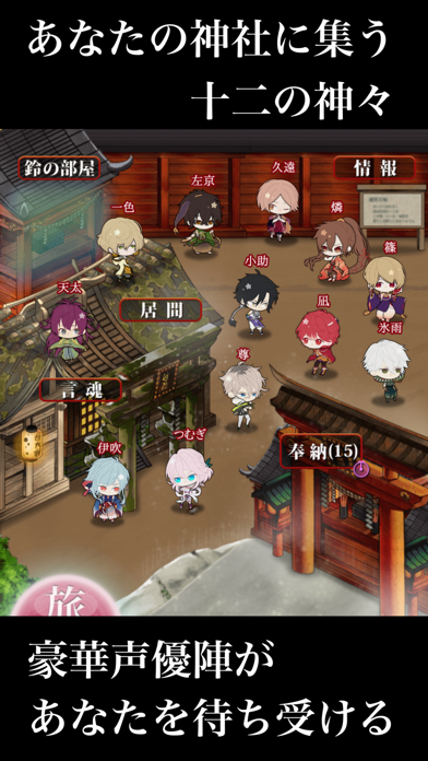 ▲京都を中心にして日本を旅して回る。ホーム画面ではちびキャラになった十二支たちとの交流もあり、ほのぼの。