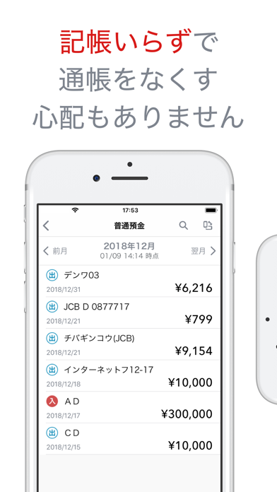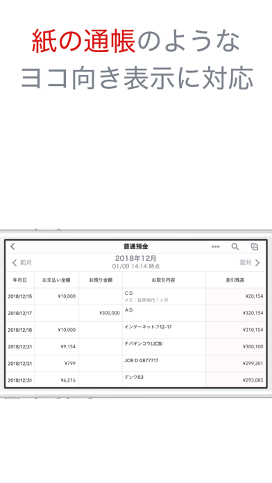 - 最大10年分の入出金明細を記録。通帳がかさばる事もない