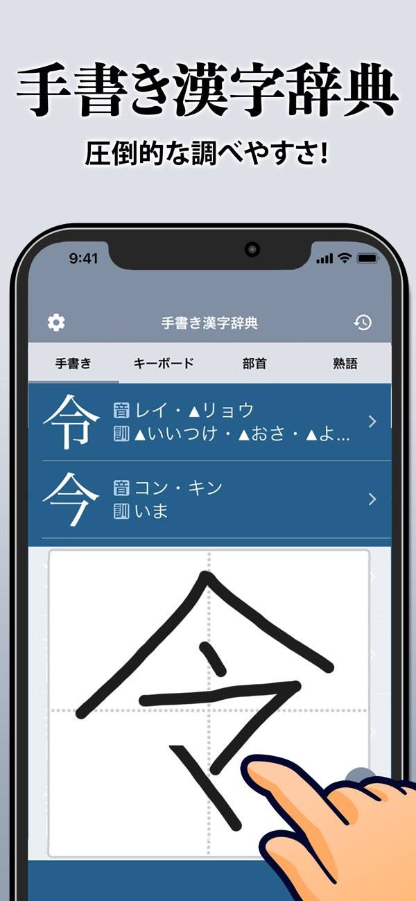 - 調べたい漢字を任意の場所に書くだけ。字形から検索できる辞書アプリ