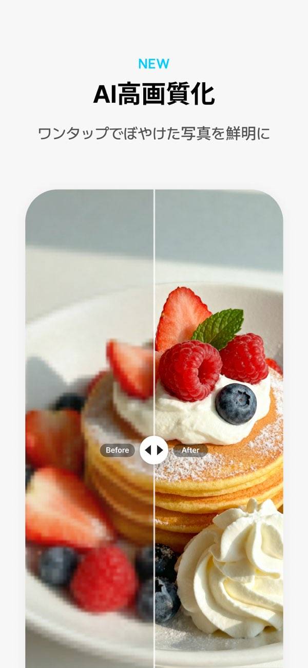 撮影した写真は瞬時にInstagramやFacebookなどのSNSに投稿可能。画面右下の共有アイコンをタップすると、瞬時に共有先の一覧が表示されます。SNSとの連携を行う必要なく、スムーズに友達やフォロワーと写真を共有できます。