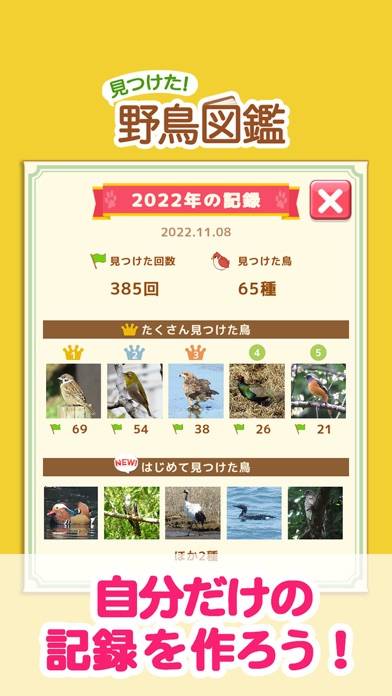 出会った野鳥の情報を手軽に記録できる機能が充実しています。見たい鳥は「スター登録」でリストアップ、実際に出会った鳥は「記録登録」で記憶に残せます。これにより、観察した鳥たちをまとめて振り返ることができ、自然との出会いがより深いものになります。
