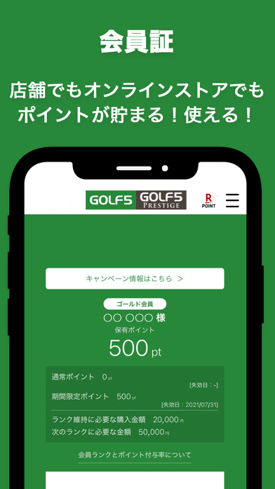 本アプリではクーポンやイベント・チラシなどの情報を配信しています。またオンラインストア機能も備わっていて、「ゴルフ5」「ゴルフ5プレステージ」の商品を時間と場所を選ばず購入することが可能。忙しい毎日でも好きな商品をお得に手に入れられます。