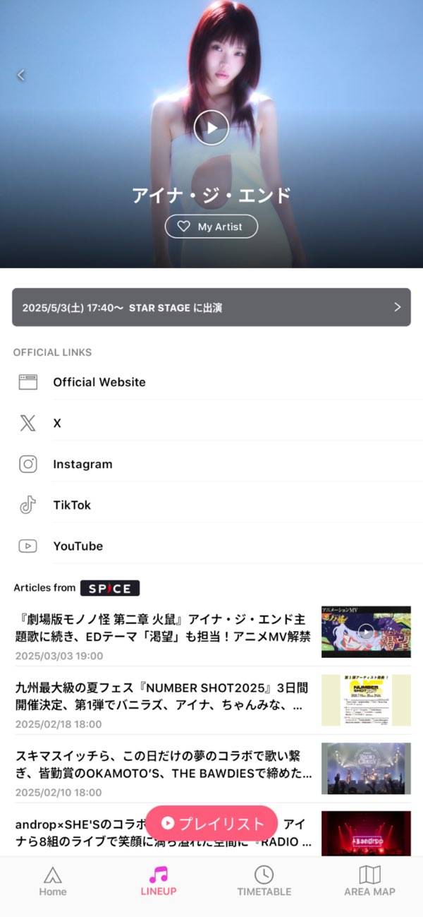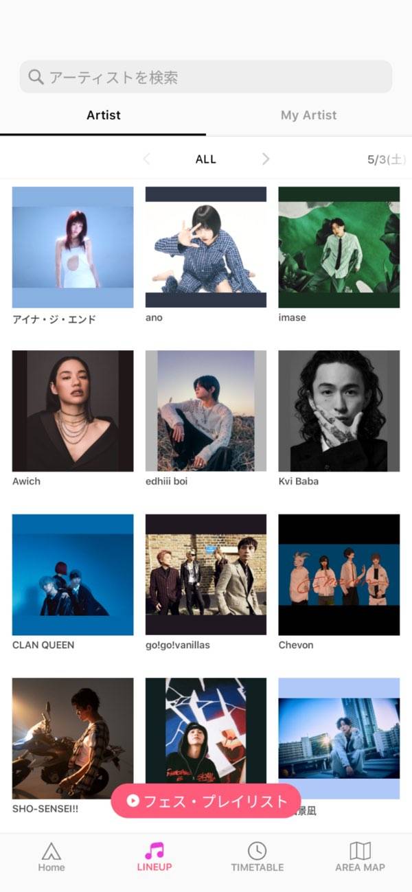 またアーティストごとのプレイリストも作成されており、フェスで興味を持ったアーティストの曲をすぐ聴けるのも◎。フェスを通した音楽との出会いを、より豊かにしてくれるでしょう。