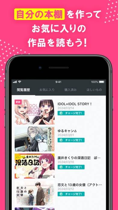 - 連載漫画の最新話をチェック可能。「更新」マーク付きだから見逃さない