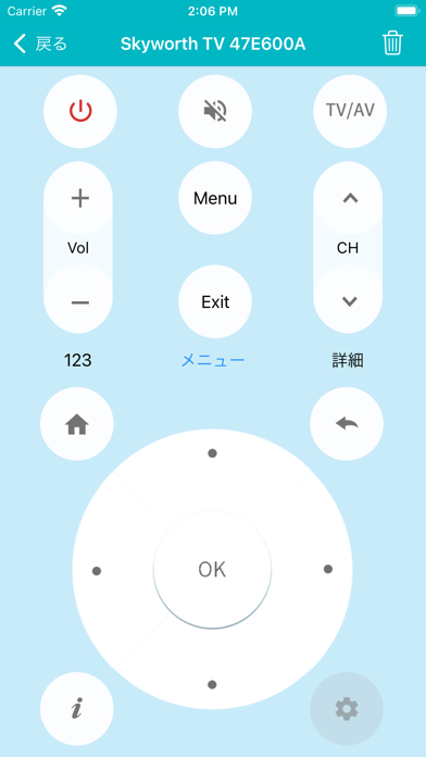 アプリと家電をリンクすると、スマホで家電を操作できるようになります。本物のリモコンとは異なる配置のものが多いですが、電源を入れたりボリュームを上げたりと一通りの操作が可能。ボタンが押しやすいように位置を変更できるのも特徴です。