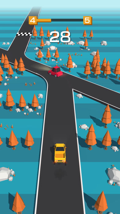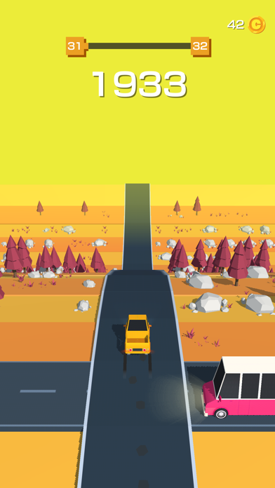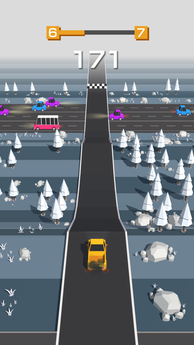 ▲画面手前の黄色い車を操作する。画面タップで進行。指を離すと停止する。