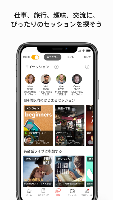 映画やドラマのワンシーンを題材に、なりきりシャドーイングで英語を身につけられる学習アプリ。SNSでも大人気の英語講師たちによるライブ配信や、外国人スタッフと触れ合える英会話カフェなど、実践の場も豊富です。ただお勉強するだけじゃない、リアルにつながる体験で英語がどんどん身につきます。
