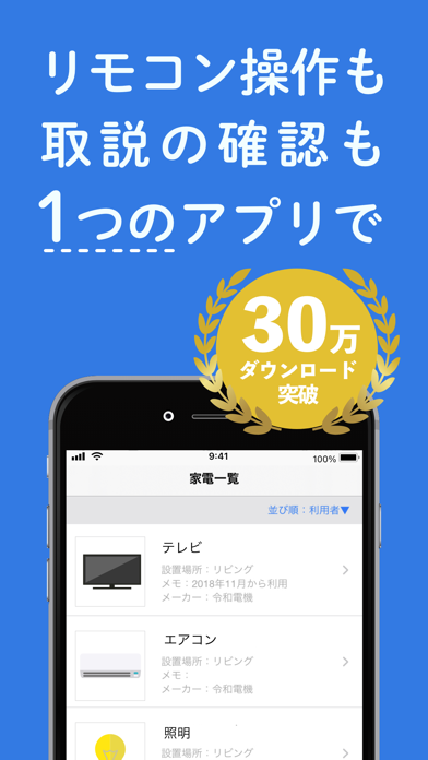 家にある家電を登録し、情報を管理できるアプリ。メーカーや型番・保証期限などの情報をいつでも確認できるほか、保証期限が近づいたときにはプッシュ通知で教えてくれます。またテレビやエアコンに対応したリモコン機能もあり、家電の操作もスムーズに。