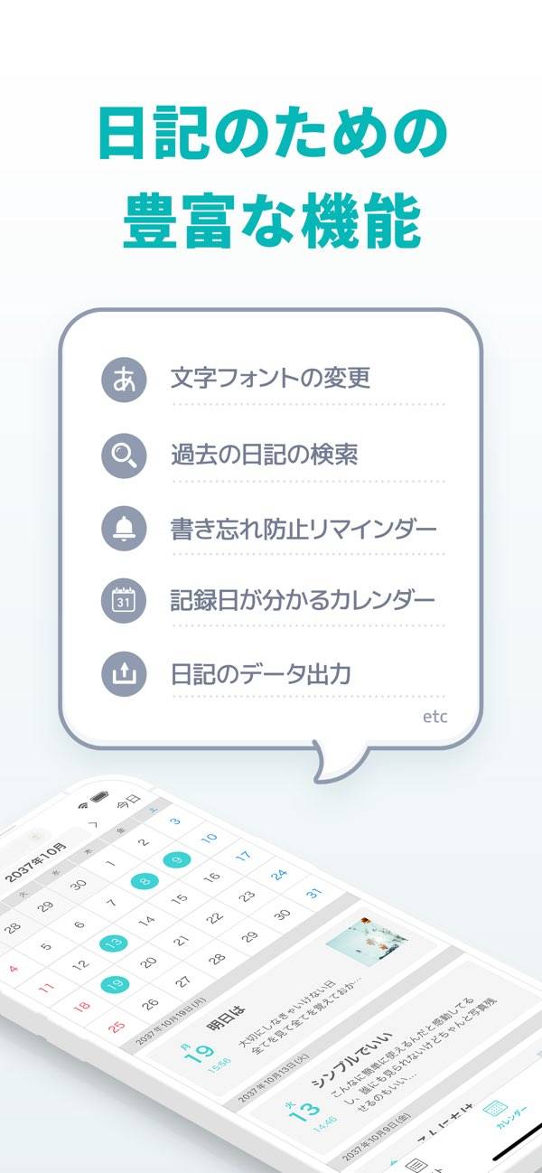 毎日の出来事やモヤモヤした気持ちを、パスコード付きでそっと書き留められます。写真を貼ったり、フォントを変えたり、自分だけの世界観で記録できるのが魅力。