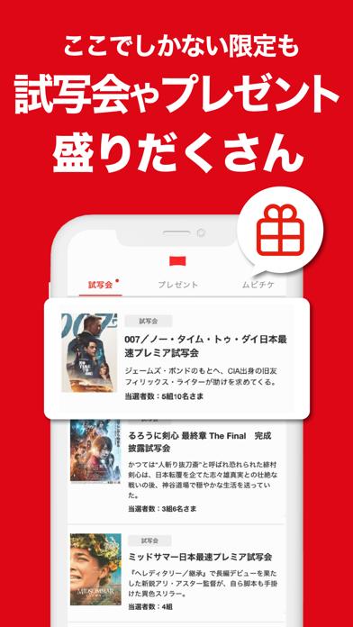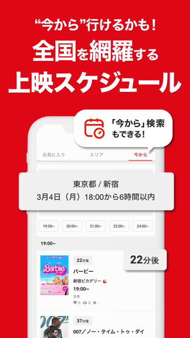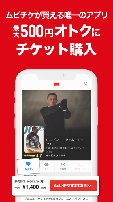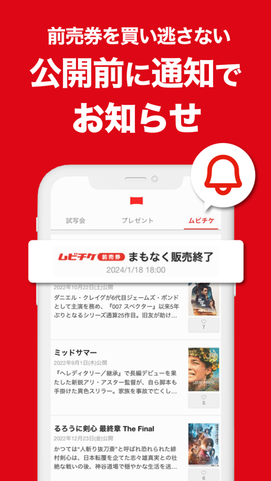 - 前売り券情報やプッシュ通知あり。観たい映画を見逃す心配なし