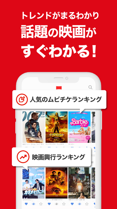 このアプリの特徴的な機能のひとつは、「みたい映画が見つかる」機能です。トレンドページでは、人気の映画や前売券のランキングをチェック可能。さらに、「みたい」に登録した映画情報は、ムビチケ販売や上映開始のタイミングで通知してくれます。