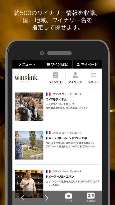 ワインの情報を入手しつつ、飲んだワインの記録を残して、いい思い出にすることができるワインアプリをご堪能ください。
