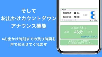 到着時間から逆算してアラームを設定できます。支度時間と移動時間を決めておけば、自動で起床時間とお出かけ時間が計算される仕組みです。お出かけ時刻をカウントダウンで知らせてくれるので、うっかり時間が過ぎる心配もないでしょう。