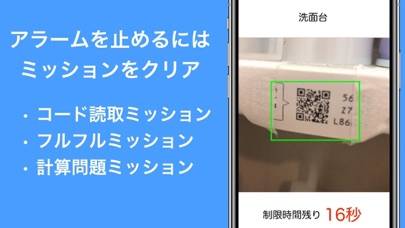 アラームを止める方法として、4つのミッションを搭載しています。「コード読み取りミッション」は、QRコードを撮影してアラームを止めるユニークなもの。洗面台などに貼り付ければ、アラームを止めた後に顔を洗い、すっきり目覚められるでしょう。