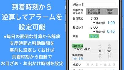- 面倒な計算の必要なし。到着時間から逆算してアラームを設定できる