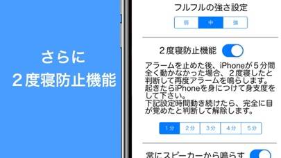 アラーム停止後3分間iPhoneが動かなかった場合、再度アラームを鳴らします。アラームを止めたらポケットなどに入れて支度をすることで、繰り返しアラーム機能が解除。機能解除時間は、1~5分の範囲で設定可能です。