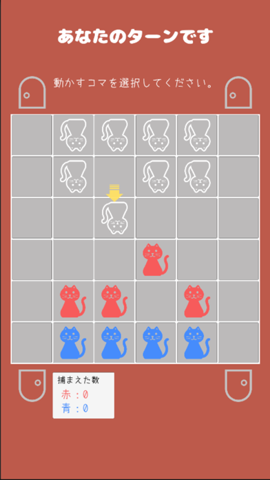▲お互いランダムに配置した猫の色は自分にしか見えない。相手の動きから色を推理して捕まえよう。