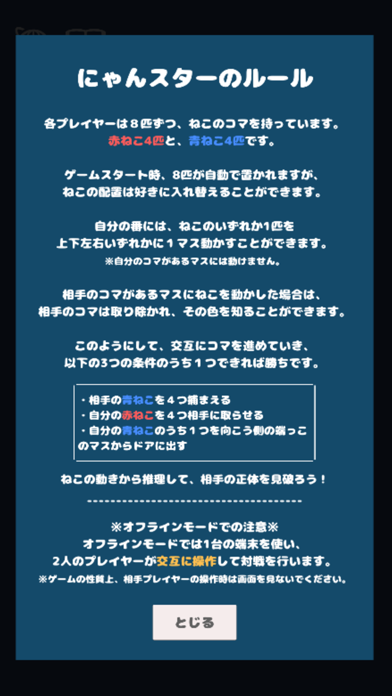 - 相手のねこの動きから正体を推理。お互いをだまし合う心理戦が楽しい