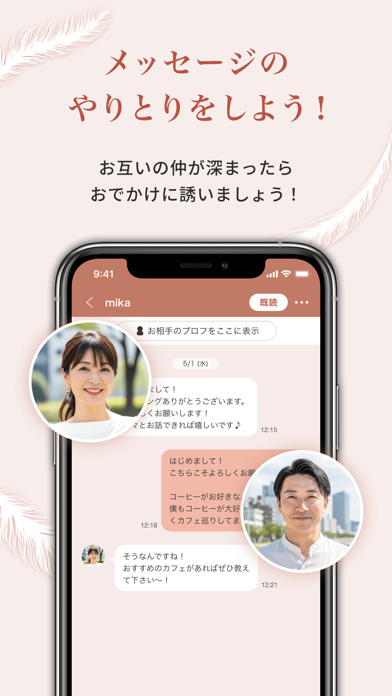 30歳以上だけだから落ち着いた大人の恋愛ができます。マッチングアプリの利用者に多い20代以下がいないため、30〜50代の人でも同年代と出会いやすいです。同年代であれば、話も合う人が多いのでメッセージでも盛り上がります。