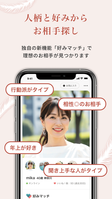 - 人柄と好みの設定だけ! 「好みマッチ」であなたに合う人と出会える