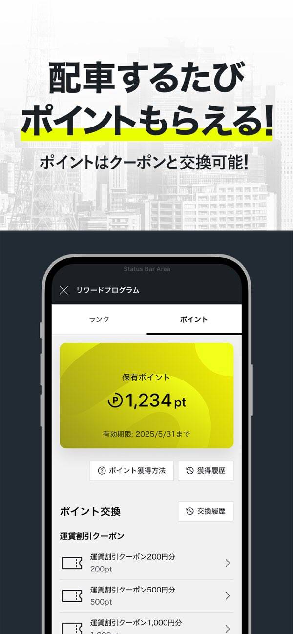 シンプルな操作で、近くのタクシーをすぐに呼べる配車アプリ。乗車から降車までキャッシュレスで完結し、支払いの手間もありません。