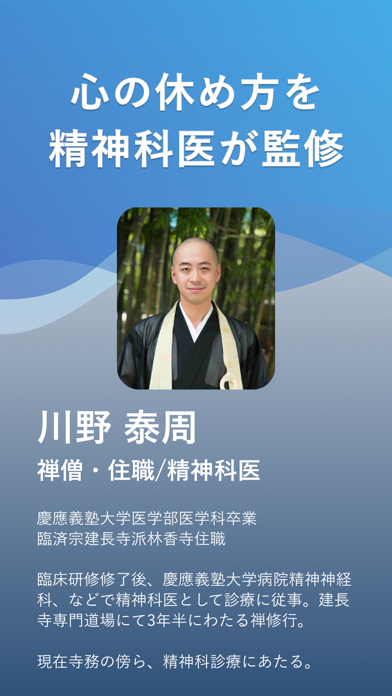 - 日本発”現役医師監修”の、本格マインドフルネス瞑想アプリ