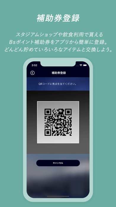 スマホで会員証を提示できます。スタジアムでの来場ポイント登録やポイント履歴の確認を簡単に行うことが可能。QRコードをかざしての入場機能も含まれており、物理的な会員証を持ち歩く必要がありません。