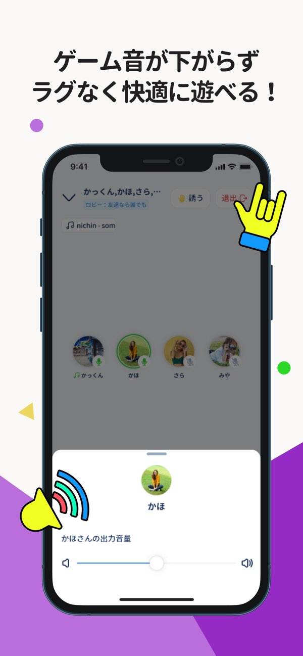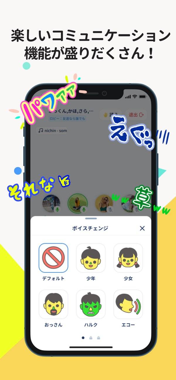 ルーム内のメンバーとチャットや通話を楽しめるアプリ。バックグラウンド再生に対応しているため、本アプリで通話をしながらほかのゲームをプレイできます。音量バランスの調整を行えば、複数人と会話をしていても、それぞれの声が聴こえやすくなるのが魅力。またボイスチェンジ機能など遊び心ある機能も搭載しています。
