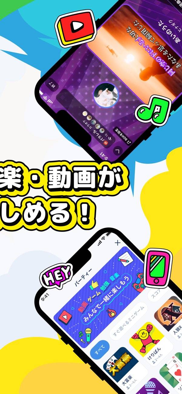 一緒にYouTubeを視聴したり、カラオケをしたりと多機能。チャットや通話だけでなく、一緒に遊べるコンテンツがたくさんあります。チャットや通話だけでは物足りないと思ったときには、アプリ内のコンテンツで一緒に遊んでみるのもおすすめです。