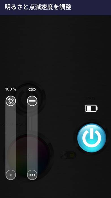明るさの調節を自由自在に行えるのも魅力です。またライトを点滅させることも可能。調節は各スライドバーを動かすだけの直感的操作で行える上、微調整をしやすいのでかなり快適に使えます。またバッテリー残量も同時にチェックできますよ。