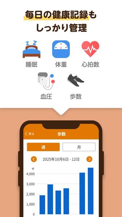 健康管理が簡単にできる機能も備えています。体重や睡眠時間、心拍数などのデータを入力すると、自動でグラフを作成。グラフで表示されることで、日々の変化に気づきやすくなり、健康的な生活を維持できます。