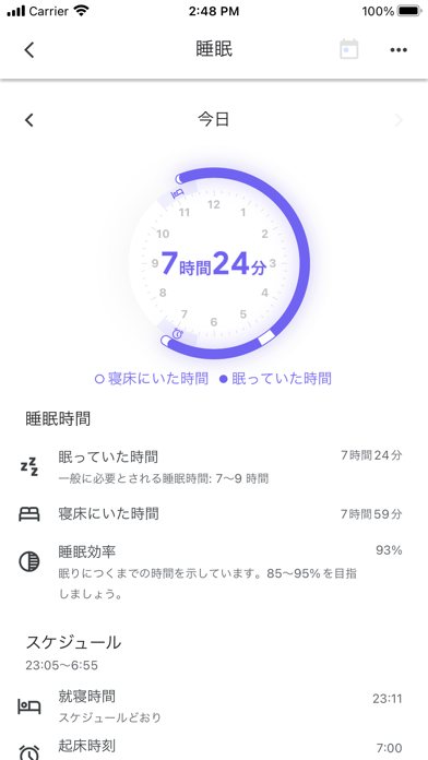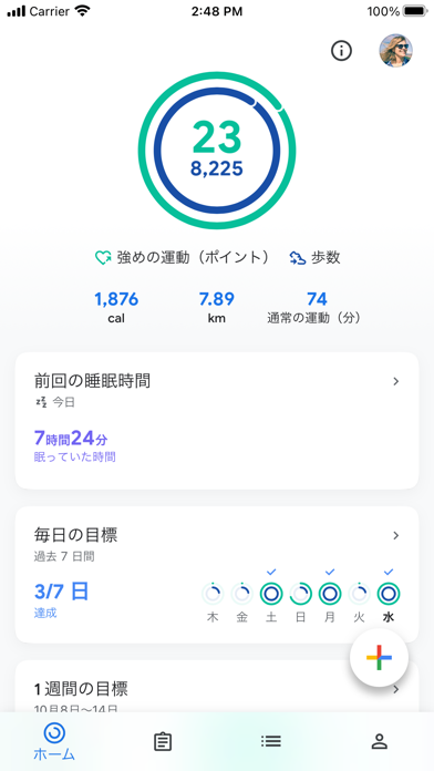 - 睡眠時間や心拍数、体重も記録できる。健康をトータルでマネジメント