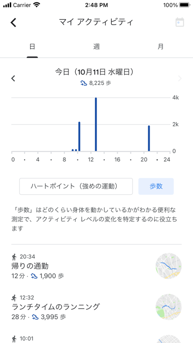 一日の運動量、今日はどうだったかな? グラフとリストで振り返り
