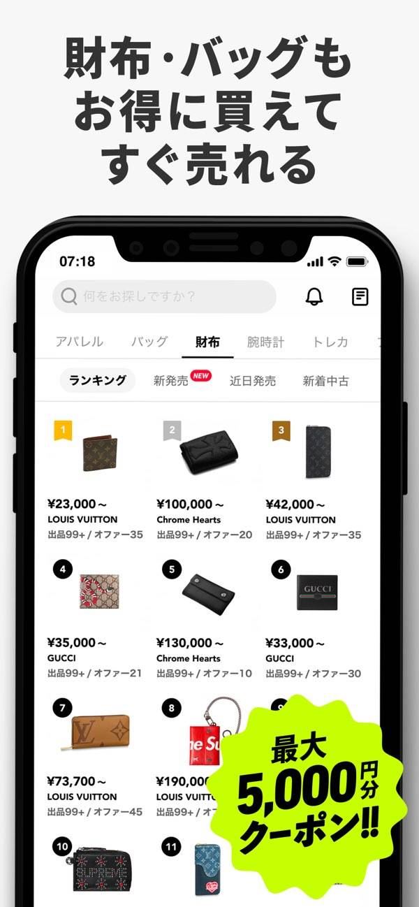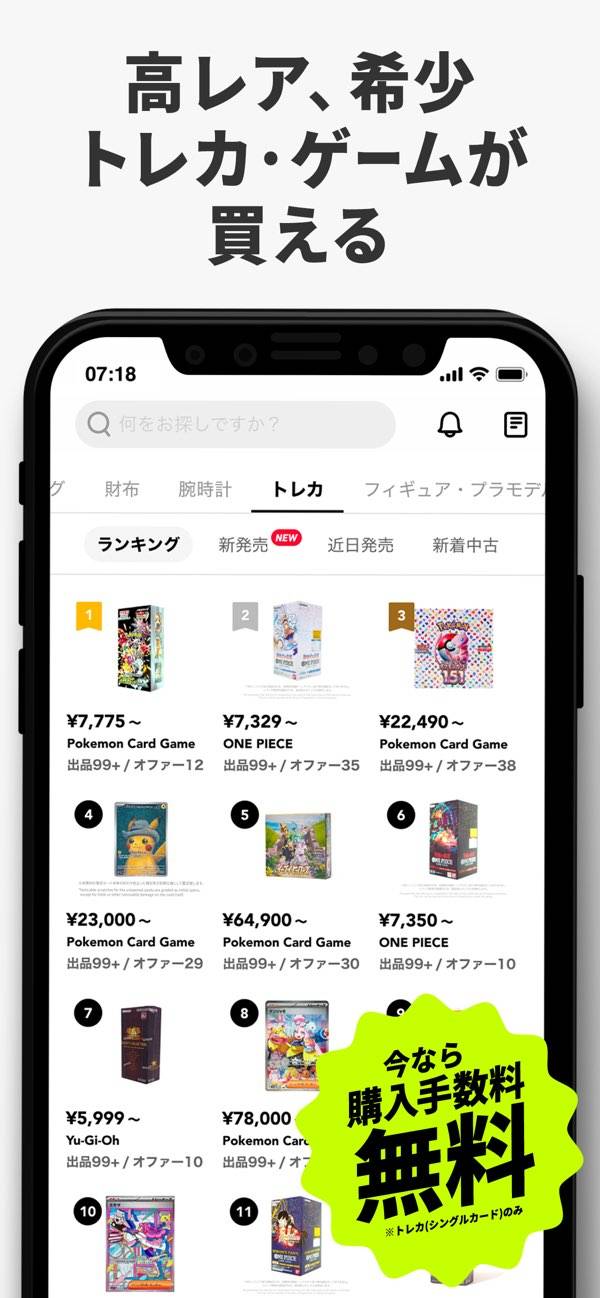 中古スニーカー、トレカの売買ができるフリマアプリです。スニーカー、シューズ、トレカ、財布などの項目から興味のあるものだけを閲覧できます。シューズの新カラー、新デザインのほか、トレカの新弾といった情報も掲載。それぞれの相場や売買履歴も見られ、買い時の見極めに役立ちます。