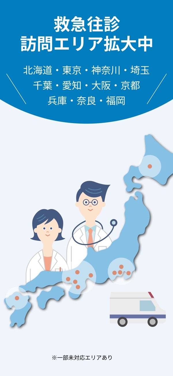 関東圏や関西圏といった都市部でサービスが展開されています。未対応のエリアはあるものの、オンライン診察なら全国どこでも対応できます。設定場所が往診可能かどうかアプリから確認してみてください。