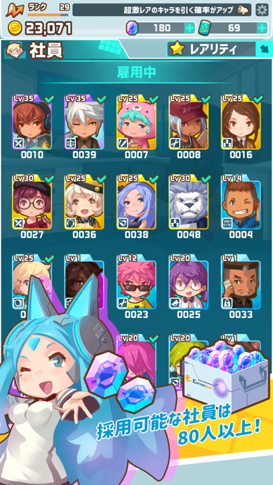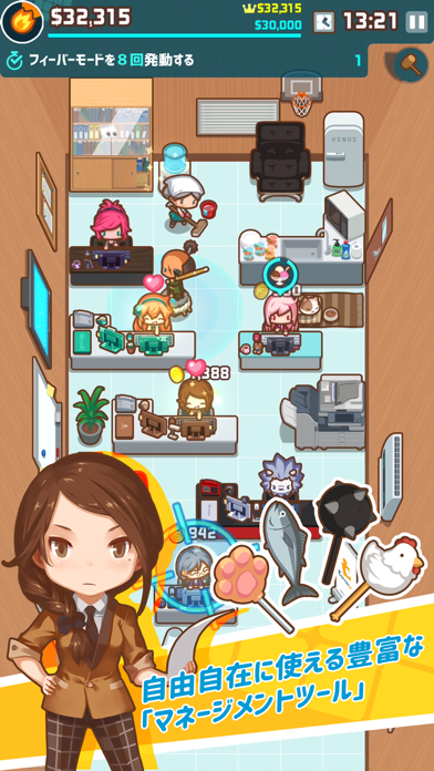 ゆるいキャラクターデザインと自由性のあるゲームシステムでつい時間を忘れてプレイしております(*´v`*)様々な社員を採用出来るので楽しめます!アップデートも定期的に行われていて、色々な新要素が追加されているため以前プレイしていた方、これから始める方にもおすすめしたいゲームです!