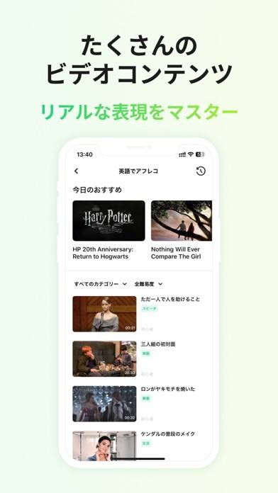自分のレベルに合わせたカリキュラムを選択できる英会話学習アプリ。端末についたマイクを使って発音を録音でき、AIが評価してくれます。収録内容は旅行、エンタメ、ビジネスなど豊富。使いたい項目を選択して、自由に英会話を学びましょう。