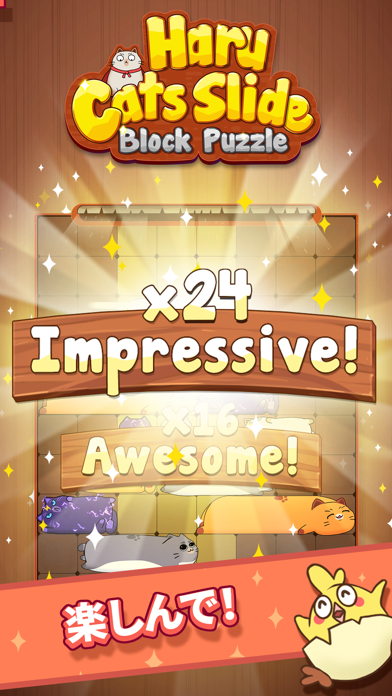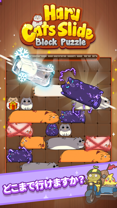 胴長だったり氷漬けだったりするさまざまな猫を、スライドして揃えるパズルゲーム。BGMはとてもまったりとしたテンポの曲が流れ、猫たちのやる気のない姿も相まって、全体的にとてもゆるい感じのゲームに仕上がっています。猫好きの方やのんびりプレイが好きな方にはおすすめ。
