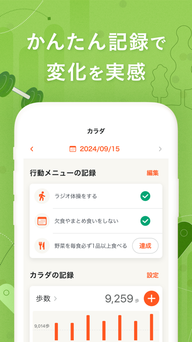 - 歩数を自動取得してグラフ化。体重も日々記録してダイエットを